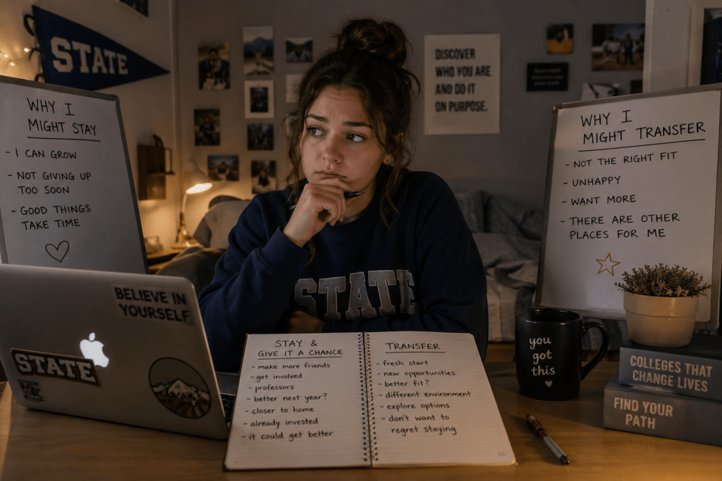 Sometimes, you can’t put a finger on what’s not clicking. You just know it isn’t. If you made a list of pros and cons and you are still no closer to finding the answer, this could also be a sign of something deeper. If you find you are sad for days on end, seek the help of the school’s counseling services. They could also help you determine what is not working in your current setting and assist you in seeing a clearer answer about whether you would mesh better elsewhere.